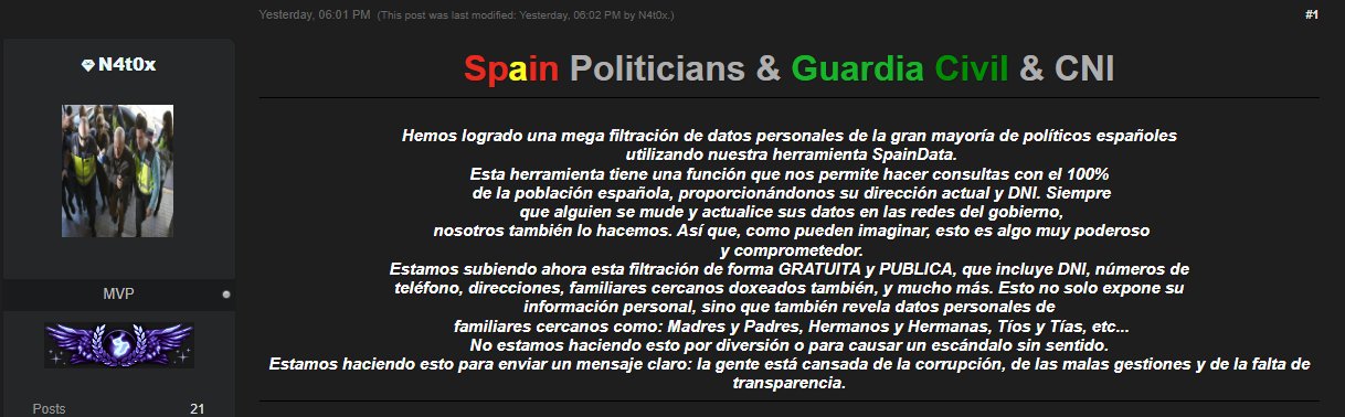 N4t0x SpainData Leak: Massive Data Breach of Spanish Politicians & Police